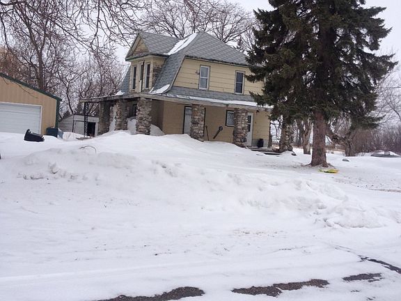 ...as soon as i have the renter out i will put pictures of the inside on here...sorry for the delay. The house sits in the northwest corner of town on four lots...many trees and a huge yard. This is a great house with great potential, it needs a little cosmetic tlc but other than that is wonderful. There is a two stall detached garage with door openers plus 4 extra feet longer than most garages. A small shed in the back yard for a lawn tractor or what ever. Taxes are 320.00 per year. Plenty of privacy...you have neighbors on one side...The towns community garden is across the street. Newer roof, furnace and wood basement. Full bath and living area in the basement. The main floor has a 1/2 bath and large eat-in kitchen. Hardwood floors on main level. The wrap around porch needs the roof replaced, Newer windows. It has the original windows in the living room...beautiful. It needs a paint job and the paint is included. This home is on three levels so there are stairs. Any questions call Tracy 701-524-2590 days The town has a grocery store, post office, senior center, cafe, bar, gas station, arcade, nursing home, laundromat, meat locker, fire and ambulance...nice place! ...and high speed internet
