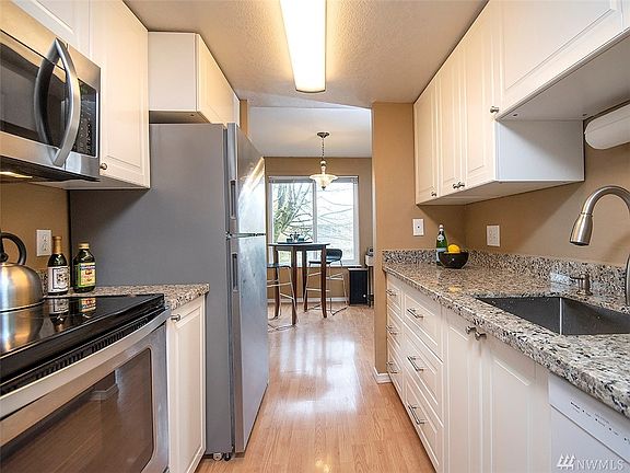 This charming unit with nearly level entry from PK lot, has been tastefully updated and is move-in ready. The kitchen has new cabinets, countertops, and d/w. The bathroom has a brand new tub & surround and new cabinets & countertops. Beautiful new laminate floors throughout the main living space. Additional features include: wood burning fireplace in LR , deck w/additional storage space, exercise room, and private access to Beverly Lake. Wonderful condo in a great location! Come and see!