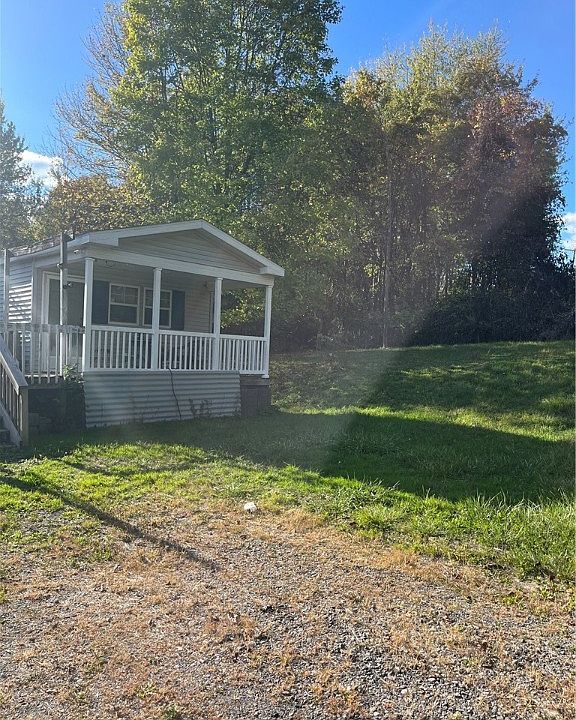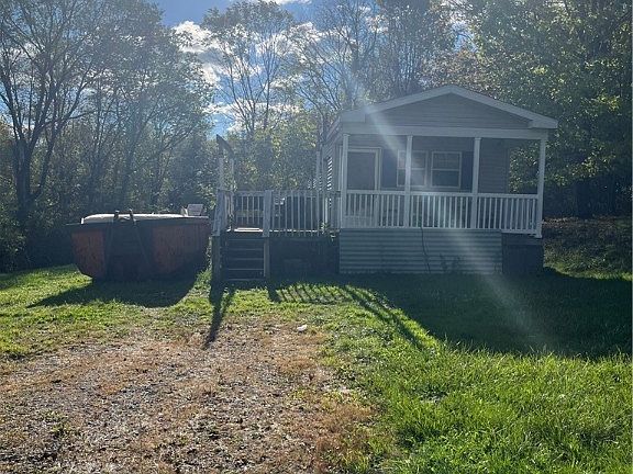 This charming mobile home, situated on its own land, offers a fantastic living space in an ideal location. Nestled on a picturesque .63-acre lot, the property is just minutes from the turnpike, providing both tranquility and convenience. The inviting rocking chair front porch leads into a spacious eat-in kitchen with ample room for a dining table. The nice sized living room features built-in shelving, perfect for additional storage or decor. There are two comfortable bedrooms and a well-sized full bathroom, along with convenient main-floor laundry facilities. While the home may benefit from some updating, it offers tremendous potential to make it your own. The expansive outdoor space further enhances the appeal of this property. Public water at street. Replaced well pump 2023. SAY CHEESE, YOU ARE ON VIDEO.