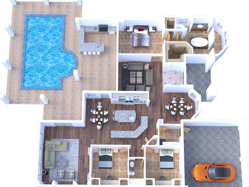 Beautiful Custom built waterfront dream home!!! Home has massive pool and deck area to entertain with outdoor kitchen area. Large master bedroom with huge master bath with walk around shower and stand alone tub. This home is loaded with options: 7 1/4 baseboards and crown modeling throughout, Tile in whole house, tray ceilings, LED lights, 8 foot doors, all impact windows and doors, and so much more. Kitchen features, wall oven/microwave combo, glass cooktop, granite counter tops, all wood cabinets with soft close drawers, large island, and breakfast nook. Call today home is near completion.
