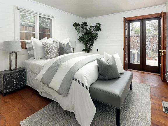 Rare Spanish hacienda style home just one block to Flood Park. One-story floor plan arranged with flexible living quarters that includes a 1 bedroom one bath guest quarters in addition to the 3 bedrooms 2 baths in the main house. Enchanting front gate opens to the inner courtyard which the home revolves around. Spacious living and dining room combination with fireplace and terra cotta tiled floors with a towering beamed and paneled ceiling. Kitchen with skylight and pass-through opening to the dining room with peninsula seating. Updated light fixtures and fresh paint throughout. The bedroom wing is comprised of 3 bedrooms including the primary suite with en suite bath and walk-in closet. Two other bedrooms served by a large updated bath with dual sink vanity. Central hallway opening to the courtyard with hardwood floor finishes.2-car garage with laundry, large lot, excellent Menlo Park schools all within close proximity to commute routes and conveniences of shopping and restaurants.