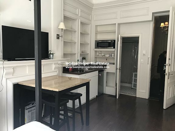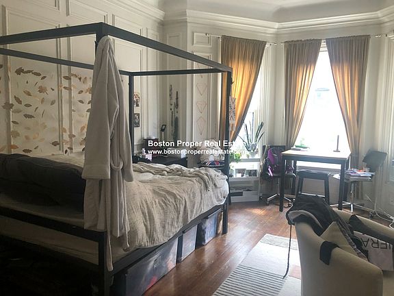 Large 2nd floor south facing studio with pretty bay window and FURNISHED... Hardwood floors, kitchenette, includes heat, hot water and electric. Laundry in building. Single occupant only, no pets. Comes with bed, desk, tv on wall. Very sunny unit with nice view... Great location down the street from the Prudential Center, Copley, and Newbury Street.