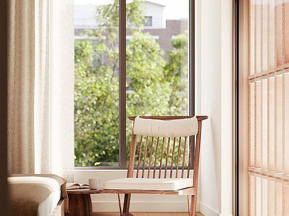 With a highly curated collection of indoor and outdoor amenities, focused on community, health, wellness, and the arts, Bergen provides a universal sense of belonging. Bergen’s Glass House, the source of equilibrium between the East and West residential wings, connects multiple amenity levels through a custom circular stair, providing residents with interconnected access to a multitude of spaces that create a sense of home. Amenity highlights include a full time attended lobby,, a ceramic studio led by BKLYN Clay, a private park for residents and two carefully landscaped common roof spaces with gas grills and fire pits designed by DXA Studio and Patrick Cullina.