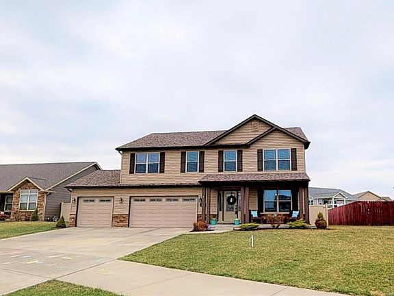 Belleville Convenience, Mascoutah School District! Ready for new owners! This beautiful 2-story home boasts an open concept kitchen and living room with tons of natural light. The formal dining area completes the main level. Head upstairs to a large sitting area with so many options! The large master suite features a walk-in closet and master bathroom with double vanity and separate tub/shower. Enjoy the convenience of an upper-level laundry room. 3 more bedrooms and a full bath round out the top floor. Recently painted and new carpet, the FINISHED BASEMENT with a family room is perfect for a home theatre, 5th bedroom, gym area, & large storage room. Relax and barbecue your heart out in the backyard entertainment area with patio, custom fire pit, and vinyl privacy fence. Passive Radon system installed. Dual Climate control HVAC. Seller-Paid 14 month home warranty! Schedule your private tour before this one is GONE!!!