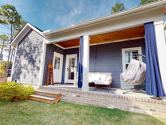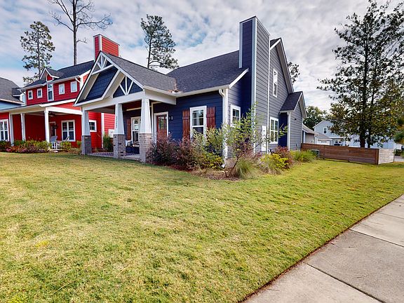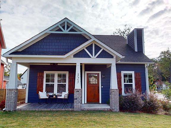 Custom built cottage with rare 2 car garage fully insulated and finished near Downtown Southern Pines. 323 Blantons has all the charm and character of a 1920s style bungalow. The home is situated on a corner lot that is adjacent to green space and surrounded by sidewalks. The inviting front porch features stained wood ceiling and shutters. As you enter the craftsman style front door you are immediately drawn to contemporary farmhouse details such as shiplap accents over the brick fireplace with a custom mantel. The open concept with engineered hardwood and tile throughout leads to the gourmet kitchen and dining combination. The enormous kitchen island has beautiful quartz counters and navy accent cabinets to match the doors throughout the home. Upgraded appliance package includes stainless steel french door refrigerator, built in microwave, and slide in range. The laundry room has the same detail as the rest of the home with a custom built barn door and hall tree. The owners suite has ample space and a very unique En-suite with Japanese soaking tub, quartz counters and completely enclosed glass shower and bath combination. A must see! Other features include 2 car finished and insulated garage with gutters, Bali black out accordion blinds in navy, fully sodded and fenced backyard.