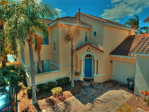 Fantastic 5 bedroom townhome in the sought after GATED community of Tuscan Hills. This home features an upstairs and downstairs master bedrooms as well as a private courtyard off of the master downstairs. Relax on the pool deck overlooking your own private pool or use one of the many community features such as the fitness room. This comes completely furnished including pool table in the garage and is ready for Short Term Rentals. This home will make a great investment, vacation or full time residence. Just 5 minutes to Wal-Mart and 15 minutes to the Walt Disney World Area and easy access to major highways.