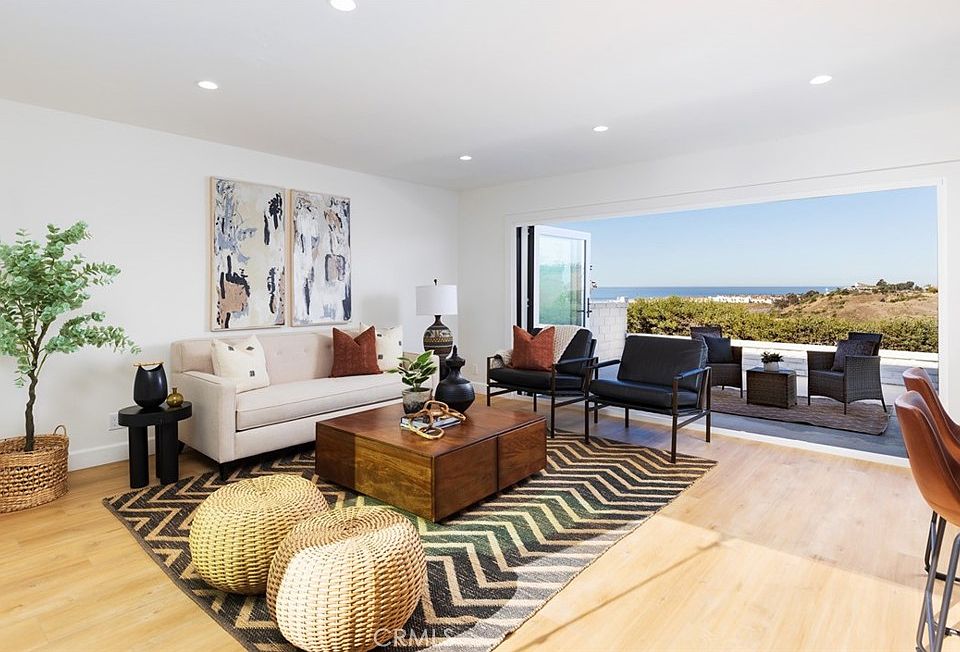 Immaculate single-story, ocean view property in the highly sought after Broadmoor community of San Clemente! This breathtaking home features 3 bedrooms & 2 bathrooms with the highest quality of detail and finishes throughout. Boasting 1,927 sqft of living space, this property epitomizes coastal living with a seamless flow of indoor and outdoor living with an open floorplan perfect for entertaining. Through the gated front courtyard and continuing passed the double door entry, you are led into the light & bright living room with soaring vaulted ceilings, a cozy fireplace, bifold doors leading to the backyard, and blue water views - from the first step into this space the sparkling blue water views command your attention. Off of the living room, you will also find a dining area next to the bifold doors that allow in cool coastal breezes. Moving left into the newly renovated kitchen, you will find an oversized center island and plenty of counter space & storage. In the center of the home and accessible from the kitchen / secondary living area & the 2 guest bedrooms, there's a warm and sun-filled atrium. The large primary bedroom has an abundance of closet space and an en suite bathroom. Completing the home is a 2 car attached garage, 2 generously sized guest bedrooms with access to the center atrium, and a newly remodeled full guest bathroom. Close to San Clemente's world famous beaches and restaurants this is the home you've been waiting for!