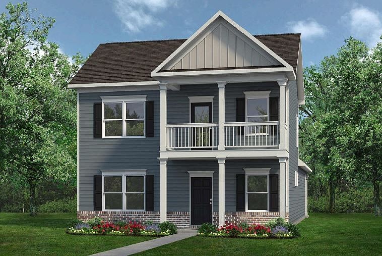 The Callaway II at Stratford Station by Smith Douglas Homes. Featured in the Village Collection. Classic colonial curb appeal is a signature of the Callaway II, one of our popular two-story homes with a first-floor owner’s suite. Guests will arrive at the covered front porch into a spacious and inviting family room, while owners will more often enter from the rear-load garage or patio. There, a bright and generous utility room and walk-in pantry are sure to help keep the main living areas of the home clutter-free. Two extra-large bedrooms upstairs share a hall bath and loft allows for extra flex space or could be optioned to a bedroom 4.