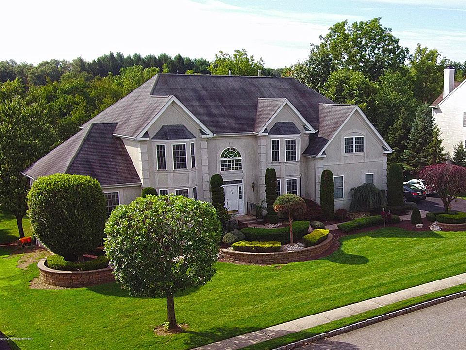 Welcome to Georgetown Estates! Located in one of Morganville's most prestigious neighborhoods sits this 5 bedroom, 4.5 bathroom center hall colonial. Situated at the end of the cul de sac is 4100+ square feet of luxury living. Enter into beautiful two story foyer with custom stone flooring. Large formal dining room with hardwood flooring leads to stunning kitchen finished with SS appliances, maple cabinetry and granite countertops. Two story great room overflowing with natural light offers gas fireplace and soaring ceilings. Elegant formal living room with french doors leads to expansive conservatory with over sized windows. Additional guest bedroom on first floor perfect for in laws and guests. Magnificent master retreat with tray ceilings and sitting room. Master bath ensuite with large jetted tub and separate shower. Princess suite with private bath and two additional bedrooms and bathroom finish off the second level. Enormous finished WALKOUT basement. PUBLIC SEWER & WATER jetted tub and separate shower. Princess suite with private bath and two additional bedrooms and bathroom finish off the second level. Enormous finished WALKOUT basement. PUBLIC SEWER & WATER
