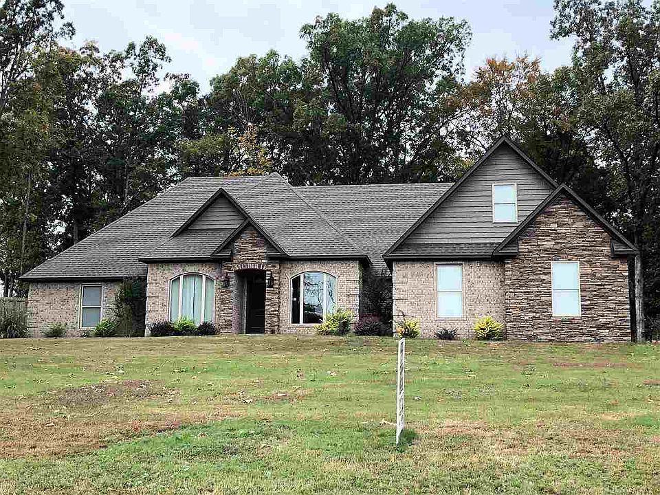 Nearly new custom built home on 1.55 acres more or less in the Brookland School district on a low traffic county road. This home is loaded with extras including a giant kitchen with Aristocraft cabinets and granite tops, handscrape finish wood floors, large island bar with electric, walk in pantry, a formal dining room and a giant covered patio! The master bedroom is spacious with wood floors, and the master bath includes a large soaking tub and a very large tiled shower with river rock floor. 3 car garage!The house is trimmed out nicely with abundant crown molding and attractive fixtures. There are dual central heat and air units and the home is all electric with the exception of the gas log fireplace. All 4 bedrooms are on the main level and one is currently being used as an office. The bonus room upstairs is huge and has a closet, so it could be used as bedroom space or second living space as needed. The home has beautiful shade trees lining the back of the property and it all backs up to beautiful undeveloped acreage! Other features include an underground storm shelter in the garage floor, a cable hookup on the back porch, and under cabinet lighting in the kitchen. Call today for an appointment!