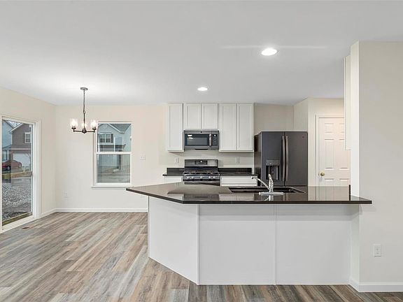 Brand new two story 3BR, 2.5BA Burlington by McBride Homes move in ready summer 2023! This beautiful home features an open floor plan with spacious family room, adjacent dining area, and kitchen with flush breakfast bar. Kitchen features premium white 42 inch cabinetry and stainless steel GE appliances. Wood laminate flooring throughout the main level! Master bedroom features two huge walk in closets and private master bath with double bowl vanity, enclosed toilet, linen closet, and large walk in shower. Second floor also features laundry room, 2 additional bedrooms w/ walk in closets, and a full bath! Home also includes upgraded lighting with ceiling fan prewires, two car garage with coachlights, soffits and fascia, and decorative interior doors w/ satin nickel hardware. Charlestowne Meadows is located within walking distance to New Town and is included in the Orchard Farm School District. Lawn mowing and snow removal is included with the HOA in this community Similar Photos Shown.