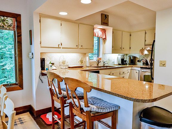 New to the market, this very well maintained tri-level Hawk Resort home in Plymouth, Vermont is ready for you! There are three bedrooms, three bathrooms, and an open living area, including kitchen with granite countertops, dining area, and sunny living room with a beautiful stone fireplace. For privacy, the sliders on this level lead to a large deck to enjoy the outdoors. The next level leads down to two bedrooms, including the primary suite and a guest bath. The lower level leads to a den, a bunk room and a three-quarter bath. Wood flooring throughout the home adds to the character of the property and there is an outdoor hot tub for fun and relaxation. There is a large storage shed for your kayaks and bikes, etc. plus a wood shed on the 1 acre lot.
