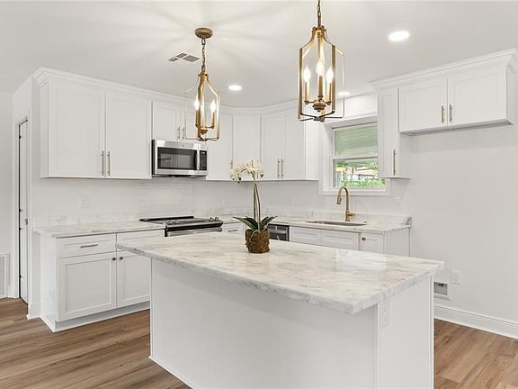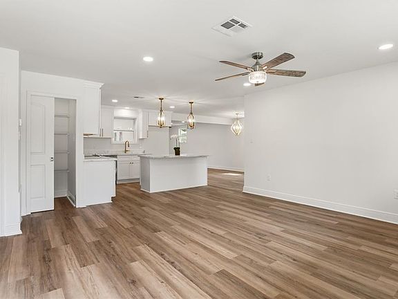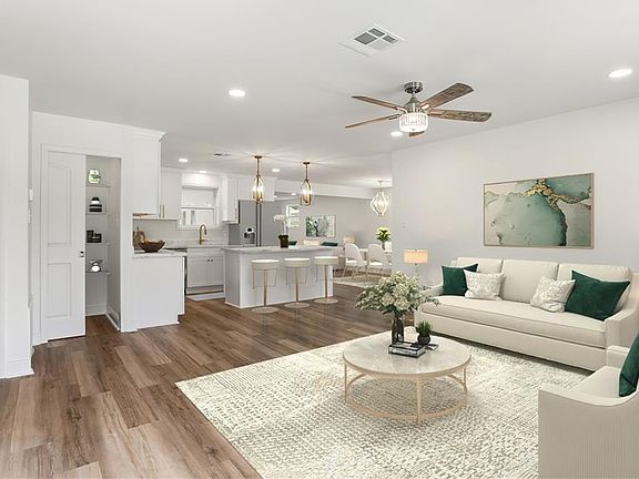 This home has undergone a complete transformation with new plumbing, electrical, AC, roof, and a tankless water heater. It offers 3 bedrooms, 2 baths, 2 living areas, and a bonus mudroom/office. The kitchen boasts stainless steel appliances, marble countertops, spacious cabinets and separate pantry. Pocket doors maximize space, and recessed and stunning lighting fixtures illuminate the interior. Outside, you'll discover a large fenced yard, a covered patio with fans and lighting, plus convenient landscaping and irrigation. The property includes a side entrance to the home near the driveway, is protected under a termite contract, and is situated in an X flood zone. Assumable flood policy in place. Call today to schedule a viewing!