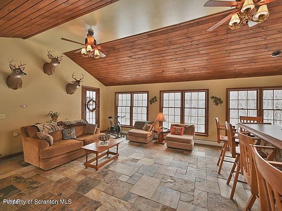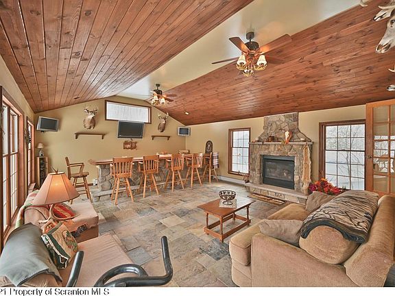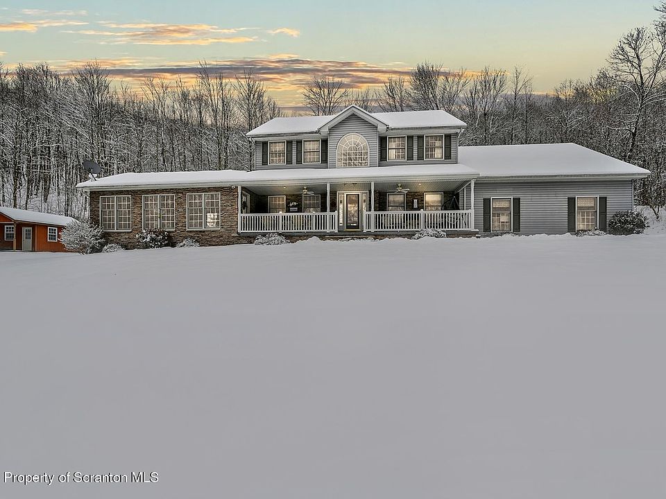 HIDDEN GEM! This immaculate 4BR/4BA colonial home is tucked away on 2 country acres, adjoins hundreds of acres of county land, and features spectacular views of the Falls from your front covered porch! The home features ample modern living space and lends itself to entertaining family and friends -- from the spacious gourmet kitchen to the stamped concrete covered back patio with pool, and stunning great room with custom stone wet bar, fireplace, and slate floor. Rounding out the home is a full finished basement and attached 2-car garage. Ideal location for outdoor recreation! Less than five miles to local lakes and five premier golf courses and just 20 minutes to Elk Mountain for skiing. Close to interstates that will take you in every direction -- 2 hours Philly and 2.5 hours NYC.