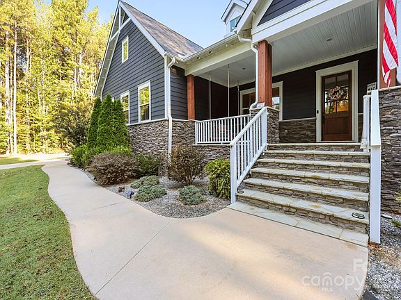 Welcome to your private retreat! This beautifully designed 4-bedroom, 3-bathroom custom ranch home offers over 3,000 sq ft of open-concept living with a split floor plan. You'll be welcomed by 10-foot ceilings and 8-foot doors, vaulted living room ceilings with exposed wood beams, and gorgeous hardwood floors throughout. The heart of the home is a chef’s dream kitchen, featuring an oversized quartz island, high-end appliances, custom cabinetry, and an effortless flow into the dining and living areas. The luxury primary suite is a true escape, boasting a spa-like en-suite bathroom with a walk-in tile shower, freestanding soaking tub, and an expansive walk-in closet. Step outside to your own backyard oasis with a heated in-ground saltwater pool, surrounded by a private, tree-lined yard with an acre cleared for outdoor activities. A winding driveway leads to this serene estate, with nearly 6 acres of land. The detached garage is the perfect workshop, man cave or storage solution and having it completely separate from the house is a nice bonus. This home has a long list of updates including a tankless water heater, a whole house water filtration system, convection oven and microwave, under the cabinet lighting, a 12-zone Hunter smart irrigation system, heavy duty well pump, encapsulated crawlspace, wood burning fireplace with option to convert to gas logs, central vacuum, water leak sensors for laundry, water heater and HVAC units, and smart home features for extra convenience. This one-of-a-kind property combines luxury, privacy, and functionality—your dream home awaits. Schedule your showing today!