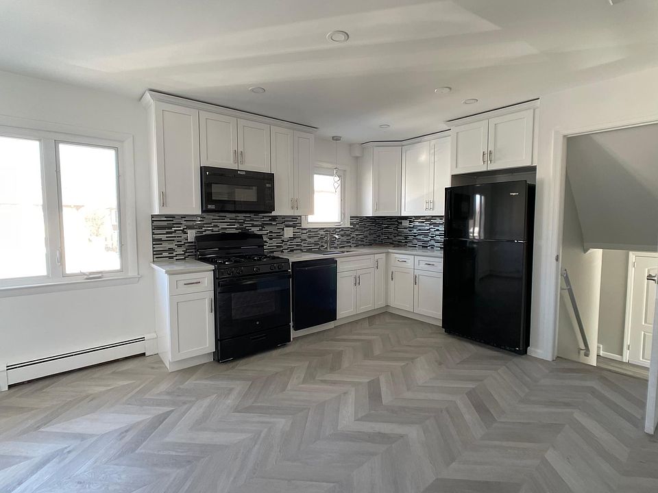 Fully renovated 3 bedroom apartment. Consist of Living room, Eat in Kitchen, 1.5 bathrooms, 3 bedrooms , one car garage, one car driveway, back deck. All new flooring, new kitchen , newer bathroom, laundry in unit, Must see! No pets. Tenant pays Heat, hot/cold water, gas, electric. One month realtor fee paid by tenant.