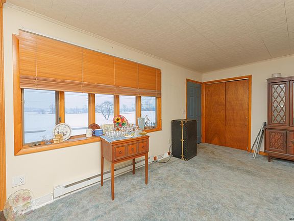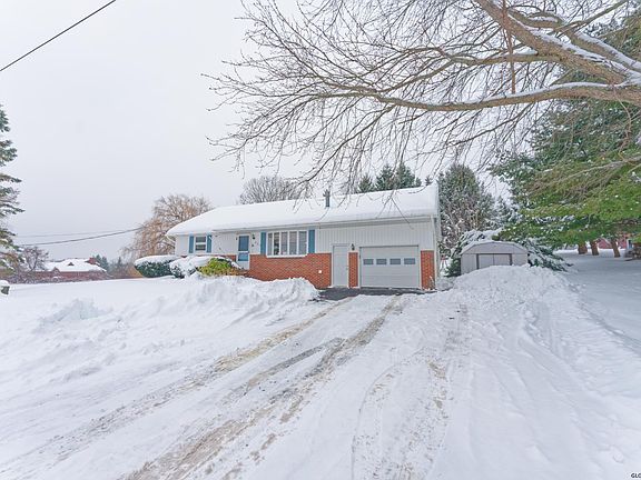 Affordability at it's best nestled on nearly an acre! 1st floor living with bonus finished 2nd floor space for bedroom or office + heated, tiled sunroom. Inviting living area with gas fireplace opens to dining and kitchen with peninsula. Beautiful wood work throughout, french doors, built ins, attached garage and full basement with plenty of storage! A well cared for home inside & out!