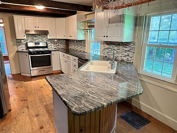 Welcome to your slice of Americana! The Caleb Wakeham Estate homestead, built in 1776 & on 3+ picturesque acres surrounded by rock walls, is a stunning testament to history; thoughtful restoration & modernization over the past 12 years balance functionality & rustic charm. Perfect for homesteading/hobby farming, with a large garden & chicken coop, & 2 add’l yard areas – one with a pond (perfect for winter skating & a firepit to warm up), another off a 20x28 deck with firepit, provide numerous entertaining spots. 3BR (2 with WIC) & full bath upstairs, plus spacious living, dining, & cooking spaces, original king wide pine flooring, built-in storage, exposed beams, 3 original fireplaces–including a honeycomb in LR with wood stove (seller to leave BioBricks & firewood), guest room/office, 1/2 bath with laundry, mudroom & gas stove. Heated 1-car garage has ample space for workshop & storage; above is ~600 sqft of finished flex space for office/ party/play/hobby/guest room. Add’l storage/work space in the large shed off the garden & in the insulated basement. Upgrades for comfort while retaining historical charm include appliances & granite counters, refinished cupboards, central air, gas furnace, tankless WH, well pump, water filtration system & more. Enjoy the bucolic & retain easy access to amenities; minutes from Route 16, perfect for commuting & exploring the area, this historic home is ready for its next owners to place their finishing touches & start creating memories