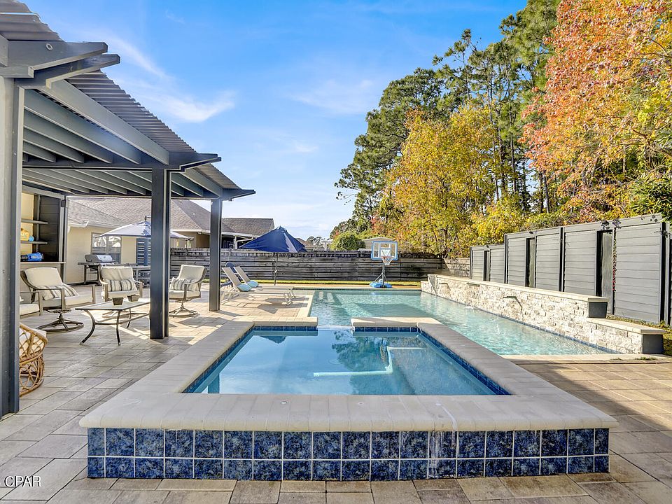 Under Contract, Seller will consider Back up offers!. Great home in the established subdivision of Treasure Palms. Solar system included with purchase! No loan to buyer! Built with metal studs! Previous model home. Large pavered back deck with large in-ground swimming pool (Heated AND chilled) with Omni Logic automation system, and in-ground hot tub. Pool completed THIS YEAR. This 3 bedroom, 2 bathroom home is perfect for your family! Recently renovated with LVP flooring through-out, paint, and remolded bathroom and kitchen, The kitchen features grey shaker-style cabinets, quartz countertops, stainless-steel appliances, and tiled backsplash. The living room is large and open, and perfect for entertaining guest with gas fireplace! The master bedroom has vaulted ceilings, and a beautifully renovated master bathroom with large walk-in closet, tiled walk-in shower, and large soaking tub. The garage has epoxied floors and in climate controlled and currently serves as a lounge area and game room. The pool features a tanning shelf, and a full pool length waterfall wall.