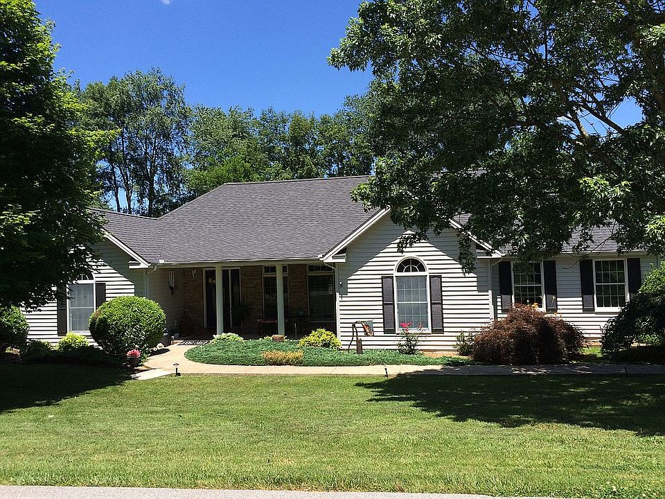 Four bedroom jewel on the golf course! You'll love having coffee on the deck with this view, leading from the spacious family room with vaulted ceiling. Separate formal dining room and cozy breakfast room beside kitchen. Kitchen also has desk work area. Spacious master bedroom with hardwood floors and bathroom has beautiful tile walk-in shower and large jetted tub. Large home office or 4th bedroom has great view to outdoors. Split floor plan offers two more bedrooms with jack and jill bathroom between. This home has lots of natural light from plenty of large beautiful windows and lots of green space surrounding.