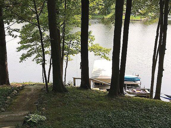 Well maintained home with 78' of private lake frontage on Lake Doster. Panoramic lake views from every level. Main floor features flexible open floor plan with large living room, dining area, large kitchen island, with slider door to a huge deck. Upper level has a spacious master with private bath, two additional bedrooms and second full bath. Lower level includes a fourth large daylight bedroom, third full bath, and family room with fireplace and slider to patio. New roof and siding, new LVT flooring throughout, completely updated bathrooms, new paint, rebuilt retaining wall along driveway, new dock and boat lift. All of this on a no wake cove on privately owned Lake Doster. Fantastic opportunity for lakefront living at a great price!