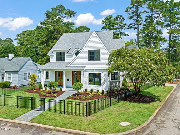 MOVE-IN READY END OF JUNE! Loaded luxury custom home built by Jacobs Building Company, located in the coveted Five Points area of Raleigh. This stunning residence offers 5 bedrooms, 4.5 bathrooms, and a rare two-car garage, a true find in this prestigious neighborhood. Designed with both elegance and functionality in mind, the open floor plan features soaring 10-foot ceilings on the first floor and 9' ceilings on the second. The gourmet kitchen is a chef's dream, equipped with top-of-the-line Wolf and Bosch appliances, a custom white oak island topped with quartzite counters, and extensive trim detailing throughout. A stylish backsplash will be installed on May 22nd, adding the final touch to this remarkable space. The first floor boasts a convenient study and a guest suite, along with a corner scullery framed by gorgeous casement windows. Throughout the home, you'll find exquisite designer touches, including sand-in-place white oak hardwood floors, gorgeous tiles and designer Visual Comfort lighting fixtures. The garage will have epoxy floors, a tankless water heater and an added recirculation pump for continuous hot water. The bonus room offers a perfect space for relaxation or entertainment, complete with an adjacent wet bar. Indoor-outdoor living is at its finest with both front and back porches. The back porch is thoughtfully designed with a built-in grill, a tile wall, Infratech heaters, and Phantom screens, making it perfect for year-round enjoyment. This home is loaded with luxury and thoughtful design, offering an unparalleled living experience in one of Raleigh's most desirable locations—close to downtown, parks, schools and restaurants all within walking distance. The home will be completed by the end of June, so don't miss the opportunity to make this exceptional property your own. Schedule a private showing today!
