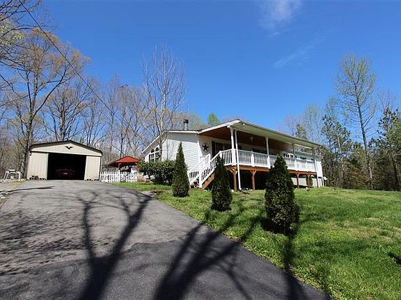 Manufactured home on permanent masonry foundation, oversized covered front porch w/tongue & groove wood ceiling, back deck,open deck, rill area, gazebo, storage shed, semi enclosed carport. Secluded property sitting on 2 acres. Extra water meter & septic.