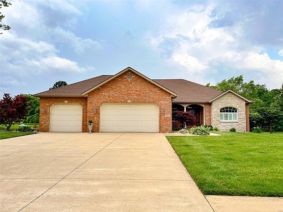 Discover the epitome of luxury living in this meticulously crafted one owner home. Situated on a serene 2 acre lot, this 4-bed, 4-bath residence spans 3,808 square feet of elegance. This private oasis features an inground pool, stone fireplace, covered patio, hot tub, bonus patio & a deck overlooking this incredible land into the woods. The interior boasts a thoughtfully designed layout with a split bedroom plan, open living area with vaulted ceilings, & beautiful views of the landscape. The heart of the home is a gourmet custom kitchen, showcasing exquisite granite counters custom cabinetry. Additional highlights include a dedicated home office, oversized garage, and designated laundry room. Nestled on a quiet dead-end street, this home offers unparalleled tranquility in O'Fallon. The finished walkout basement includes the fourth bedroom wing with full bath, grand recreation room, & an abundance of storage. Don’t miss the opportunity to call this exquisite property your forever home.