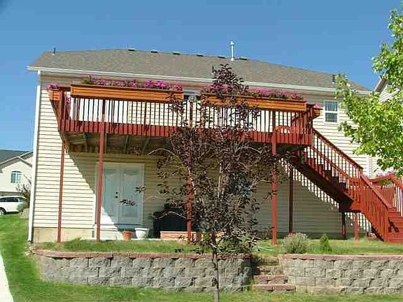 Immaculate, upgraded ranch style home. Sunny, light & bright. Alder cabinets & pantry in custom kitchen. Tray ceiling & turret accent living room with gas fireplace. Master bedroom has double vanities & closets, French doors lead to over-sized deck with custom built-in planter boxes & fabulous city views. Basement has full sized kitchen with pantry, walk-out with double doors that leads to patio, 2 family rooms. Home is convenient to hospital, ISU, & I-15. Built-in closet organizers in each bedr