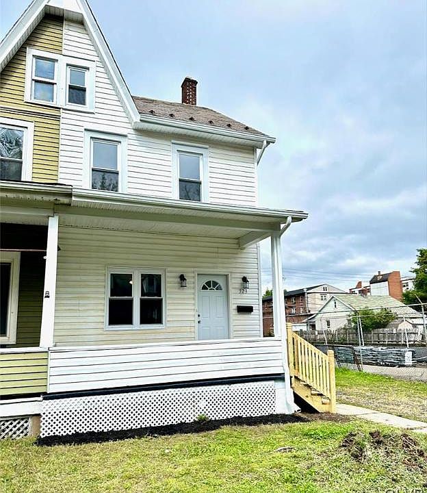 This completely remodeled twin has 3 spacious bedrooms; 2 bathrooms, eat-in kitchen and large living room.  Fresh paint and new flooring through out.  The kitchen has new cabinets with granite counter and stainless steel stove and built-in microwave. The laundry room/half bathroom are on the first floor.  The living room has new carpet, ceiling fan and dining area. There are 3 bedrooms on the second floor along with a complete new full bathroom with tile and shower/tub. There is an attic that could be finished off for more living space. There are new windows, new porch roof, privacy fenced in backyard and new gutters and downspouts.  Both the front and back porches are covered. This home has a driveway and also on street parking.