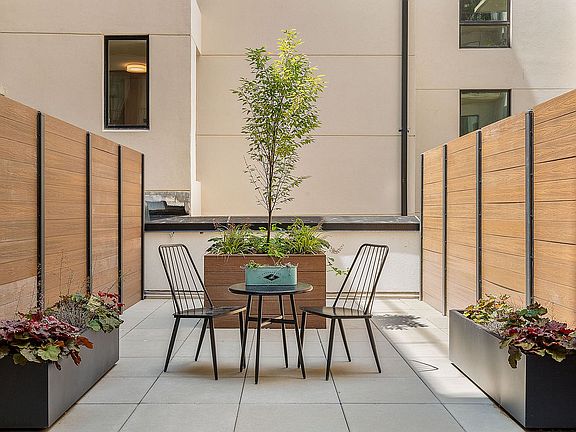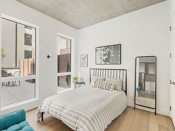 Comprised of 47 unique one and two-bedroom homes, 45 of which feature significant private outdoor space. Interiors are framed by up to 10' exposed concrete ceilings, floor-to-ceiling sound attenuated windows, and ash gray, wide plank, European oak flooring. Each layout offers a thoughtful balance of scale, utility, and flow. Kitchens are appointed with full-height, custom matte grey lacquer cabinetry, brushed stainless LG refrigerators with bottom freezer, integrated Blomberg dishwashers, and a 4 burner Blomberg gas range. Baths incorporate either glass-enclosed showers or Kohler soaking tubs, and neutral toned floors and wet walls in large format porcelain tile. Full width mirrors, custom storage vanities, and contrasting matte black fittings complete the package.