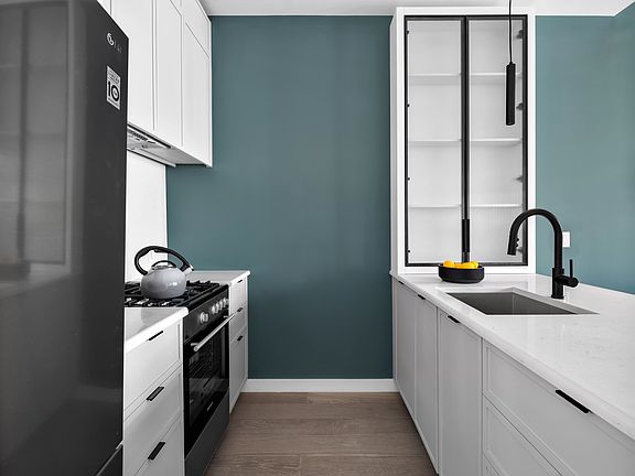 One Bedroom + Home Office! Introducing 323 Lenox Road, the newest condominium offering on the Prospect Lefferts Gardens/Flatbush border. Sited amongst similarly scaled mid-rise buildings, the condo seamlessly contributes to the area's diverse architectural fabric. Designed by Studio SC for a discerning urban eye, the building incorporates timeless elements of both function and form that elevate residents' visual and interactive experience while ensuring aesthetic relevance for years to come. Comprised of 47 unique one and two-bedroom homes, 45 of which feature significant private outdoor space. Interiors are framed by up to 10' exposed concrete ceilings, floor-to-ceiling sound attenuated windows, and ash gray, wide plank, European oak flooring. Each layout offers a thoughtful balance of scale, utility, and flow. Kitchens are appointed with full-height, custom matte grey lacquer cabinetry, brushed stainless LG refrigerators with bottom freezer, integrated Blomberg dishwashers, and a 4 burner Blomberg gas range. Baths incorporate either glass-enclosed showers or Kohler soaking tubs, and neutral toned floors and wet walls in large format porcelain tile. Full width mirrors, custom storage vanities, and contrasting matte black fittings complete the package. Anchored by an airy yet intimate lobby, residents are welcomed by a stunningly clean blend of plate glass, cool concrete, and warm wooden accents. Two distinct wings, each with their own elevator, offer owners a chance to greet while making their way without delay. Hallways are marked by soft archways and intricate custom lighting providing added comfort and sense of place. Amenities at 323 Lenox Road are both abundant and purposeful. An expansive furnished and landscaped rooftop is clad in wooden decking and adorned with step and string lighting reminiscent of a classic Brooklyn brownstone. Several distinct lounging and dining areas are dotted with lush planters, completing the picture. Further to the rooftop experience, residents will enjoy a state-of-the-art fitness center including changing rooms, a dry sauna, and yoga room. On the same level is a generously appointed lounge with independent workstations, communal tables, and an array of commodious seating. Both large and conventionally sized storage units, along with dedicated, on-grade parking are available for purchase, while bike storage is included. Additionally, residents will be served by an automated package system by M-Box, ensuring reliable deliveries. Rooted in history while fused with all that makes Brooklyn modern and vibrant, the neighborhood offers a fleeting opportunity to own within NYC for respectively less than its destined value. Immediate access to Prospect Park along with endless attractions along Bedford, Flatbush, and Nostrand Avenues make for the ultimate playground beyond the lobby doors. Multiple modes of transit including the 2,5, Q and B trains with express service to Manhattan keep residents connected with the big city while enjoying the respite and charm that is Brooklyn. The complete offering terms are in an offering plan available from the Sponsor. File No. CD21-0312.WGL Lenox group LLC 4910 16th Ave, Brooklyn, NY 11204. All dimensions are approximate and subject to construction variances. Plans, layouts, and dimensions may contain minor variations from floor to floor. Sponsor reserves right to make changes in accordance with the terms of the offering plan. Equal housing opportunity.