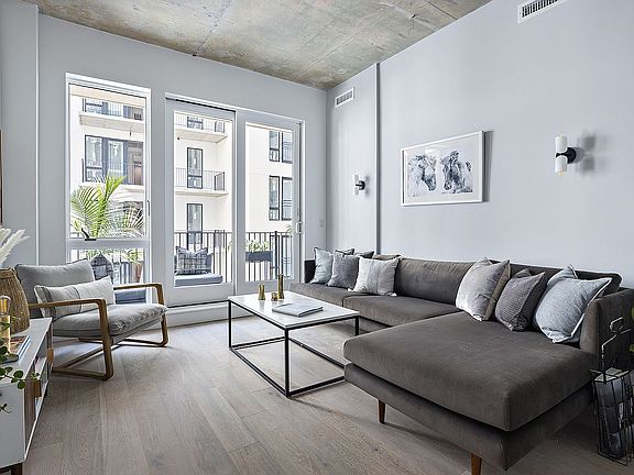 Comprised of 47 unique one and two-bedroom homes, 45 of which feature significant private outdoor space. Interiors are framed by up to 10' exposed concrete ceilings, floor-to-ceiling sound attenuated windows, and ash gray, wide plank, European oak flooring. Each layout offers a thoughtful balance of scale, utility, and flow. Kitchens are appointed with full-height, custom matte grey lacquer cabinetry, brushed stainless LG refrigerators with bottom freezer, integrated Blomberg dishwashers, and a 4 burner Blomberg gas range. Baths incorporate either glass-enclosed showers or Kohler soaking tubs, and neutral toned floors and wet walls in large format porcelain tile. Full width mirrors, custom storage vanities, and contrasting matte black fittings complete the package.