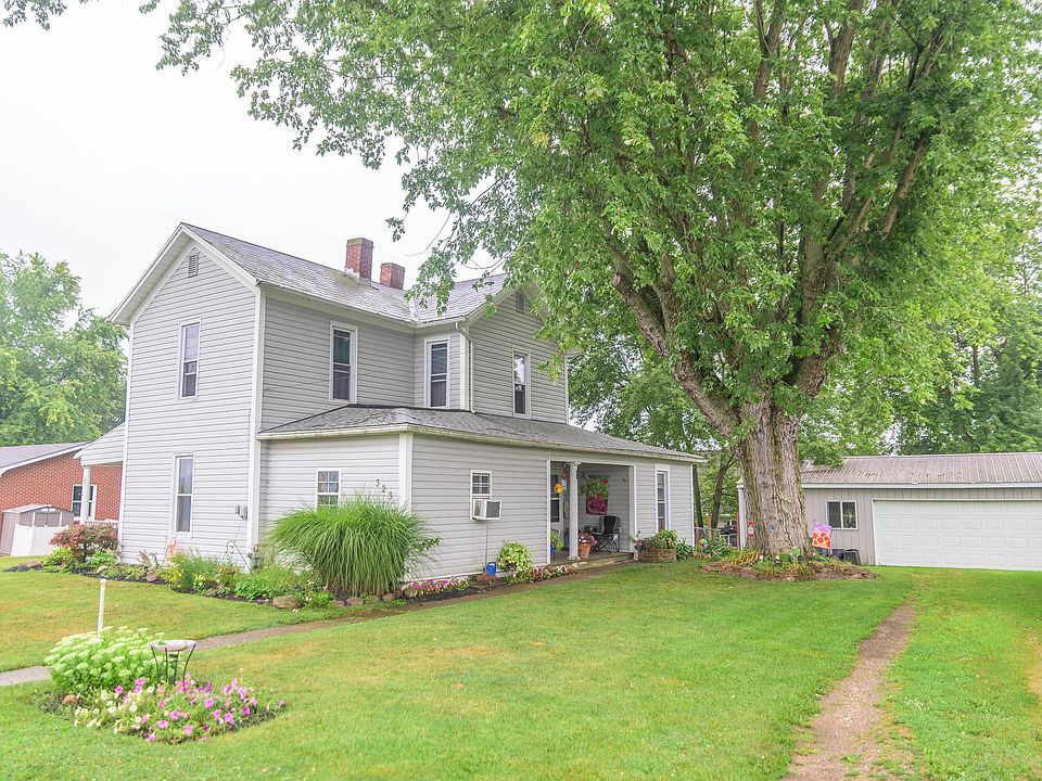 Turn of the century farmhouse located in the heart of Pleasantville. Home has been beautifully maintained by it's current owners and is ready for it's new adventure. The updated kitchen greets you as you enter the home and takes you into a nice dining and living area. Also on the first floor is a bedroom that could be another living space that opens to the front porch and a HUGE bathroom with laundry attached. The second floor hosts three spacious bedrooms. Outside, you have your choice of either side porch to sit on or sit in the back yard on the deck and admire the gardens and pond. Once the temperature starts dipping down, enjoy the fire pit area! Detached two car garage sits on the other parcel with plenty of space for parking and tinkering.