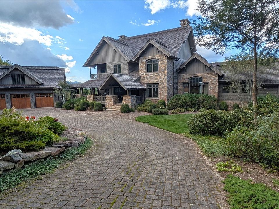 Beautiful custom home located behind the gates of Pinchot! Ownership of this home allows for the opportunity to apply for a membership into the adjacent Mountaintop Golf and Lake Club. Sitting on a private 5.07+/- acre pasture lot, this home offers breathtaking long-range mountain views. The main level of the home features an expansive Great Room with cathedral ceilings, a large window wall, and stacked-stone wood burning fireplace. Also on the main level, you'll find a cozy den with its own fireplace and private balcony, a gourmet kitchen with stainless steel appliances and brand-new countertops, a large dining area with ample seating for 10+, a private office with built-in bookshelves, a beautiful covered porch overlooking the mountains and the pasture below, and the primary bedroom suite which includes a 3rd stacked-stone fireplace, two large walk-in closets, and an oversized bath complete with soaking tub, shower, and separate his/hers vanities! The upper level of the home features three guest bedroom suites, one of which offers a 4th fireplace and private balcony. The lower level of the home features a second oversized living area with a 5th fireplace, a large open-air deck, a home theater, full bath, and two additional bonus rooms which could be used for a variety of purposes including a fitness room, rec room, bunk room, or extra sleeping area! On the exterior, you'll find an attached 3-car garage and beautiful landscaping! The prestigious community of Pinchot is located less than 3 miles from the center of Cashiers and offers larger acreage homesites with pasture lands (maintained by the POA) and expansive long-range views. And, of course, membership into Mountaintop includes the world-class Tom Fazio golf course, the Lake Club at Lake Glenville, spa facilities, Outdoor Pursuits programs, Activity Center, tennis courts, pool and fitness complex, and full-time member services to assist you in any way when you are home in the mountains!