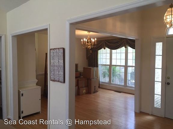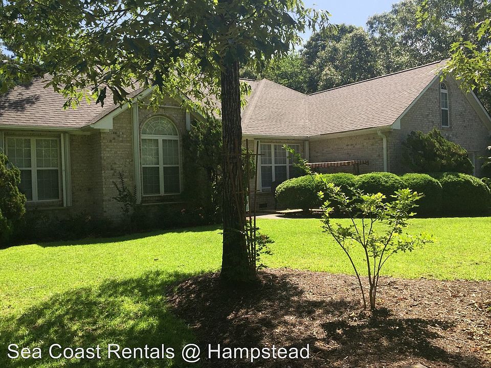 Beautiful Hampstead Home - Beautiful brick one-level home in Belvedere. Features include 3 bedroom, 2.5 baths, formal dining room, living room and family room with masonry gas fireplace and stone decor. Generous sized eat-in kitchen with desk/office area is bright and full of natural light. The unfinished room above the garage affords spacious storage. There are Hurricane Shutters in place for all windows and a generator for loss of power during adverse weather. French doors in the family room provide access to large back deck and yard, complete with swingset and garden area. The front yard patio area and surrounding rose beds offer a quiet respite from a busy day. Application Fee Required NO SMOKING IN PROPERTY Topsail Schools Pet Friendly (RLNE3406938)