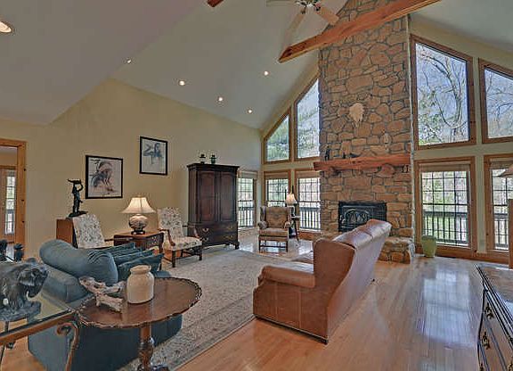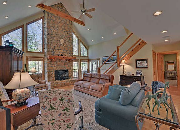 Beautiful home sits on 4 wooded acres right off Skeenah Gap Road just minutes from Blairsville. Enjoy large living room with wall of windows to let outdoors in as well as a seasonal view of Wallalah Mtn. Spectacular fireplace, special architectural features, and beautiful hdw floors all add to the elegance of this mtn. home. Great dining room to accommodate all needs. Custom kitchen includes island, lighted cabinets, silestone counter tops, and top of the line stainless steel appliances . Central vac. Jotul wood burning stove. Lg. laundry room. Basement 9 ft. ceilings. Oversized 2 car garage. Extensive screened porch, wrap around covered decks and covered porch off upper bedroom. Near the Benton Mackey Trail and the Toccoa River.