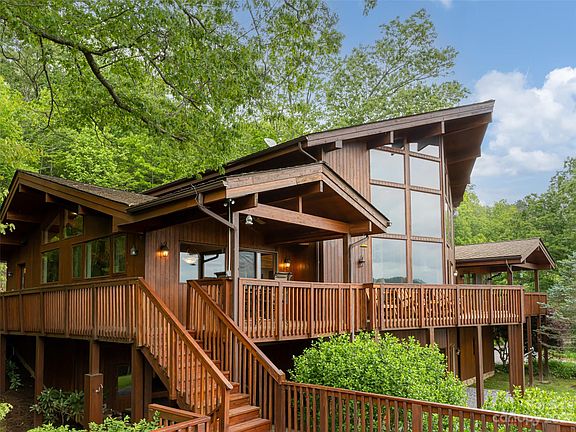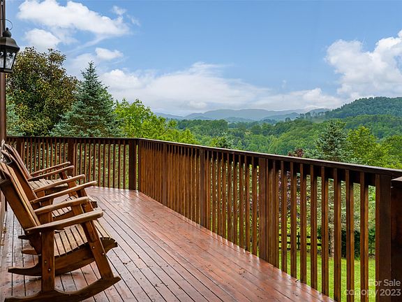 This impressive custom mountain home and its views will take your breath away! Privately situated on 5 acres in the beautiful Blue Ridge Mountains of Haywood County, NC, the property enjoys 4 bedrooms plus a bunk room. The main level boasts an open floor plan, a two-story vaulted great room, two luxe primary en suite bedrooms, multiple fireplaces, and pristine long range mountain views. The fully finished lower level comes complete with wet bar, outdoor kitchen, stone fireplace, rec room, and a bunk room suite. The abundant decks are accessible from multiple points, blurring the line between the indoors and out. The back yard is level with a large fire pit area and beautiful flagstone landscaping. Great accessibility to the property, and the easy access driveway leads to both the lower and main levels. With long range views of the Great Smokies and only 35 minutes to Asheville, this is the epitome of an Appalachian mountain retreat.