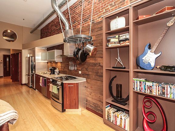 Enjoy being close to the riverfront and vibrant downtown! This 1 bedroom condo has fabulous views of main street & tons of character! Upon entering you'll fall in love w/the spacious feel, bamboo wood flooring & upscale finishes. The kitchen area features stainless steel appliances, including a wine fridge! The floor plan is perfect for entertaining with bright open spaces and a covered balcony. spectacular views of main street and a remote controlled overhead door. Washer, dryer and both flat screens stay