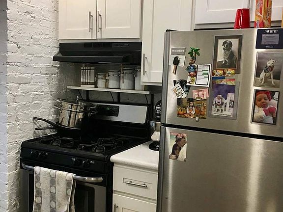 UNIT 3A Renovated Large One Bedroom Eat in kitchen with white wood cabinetry & all stainless steel appliances Pass through fromKitchen to Large Living Room Beautifully Designed Full Tiled bathroom Hard Wood Flooring Great Closet Space High Ceilings & Bright Pet Friendly!:))