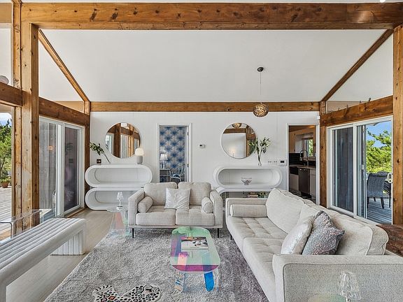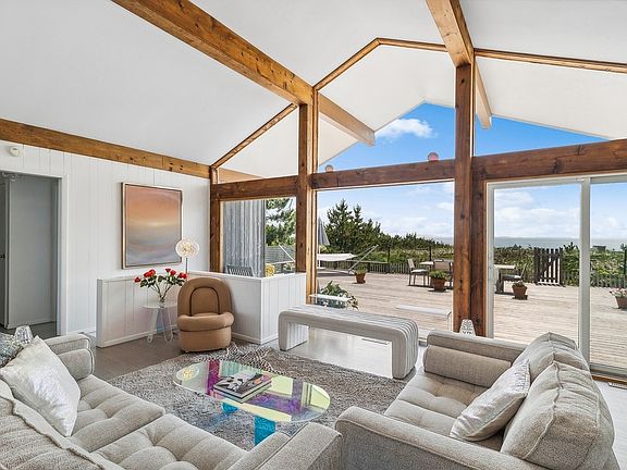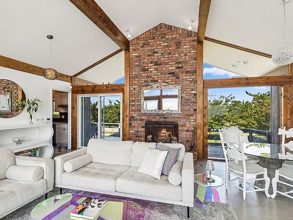 Rental Registration #: 25-5 This oceanfront beach house with all new furniture is located at the end of a private road less than a Mile to Amagansett's Main Street. Sweeping ocean views from the spacious living room with cathedral ceiling, beams, fireplace and crisp white beach furniture. Wake up to beautiful ocean views in the primary ensuite bedroom which is also on the main floor. There are 2 additional guest rooms with renovated bath. Updated kitchen with new stainless steel appliances. The living room has a wall of glass sliding doors that lead to a large deck with outdoor furniture and barbecue. There is a second deck closer to ocean with fire pit. Downstairs there is a family room, bonus room, full bath, laundry room and one car garage access. Spend the summer with the ocean beach as your backyard. Pet friendly.
