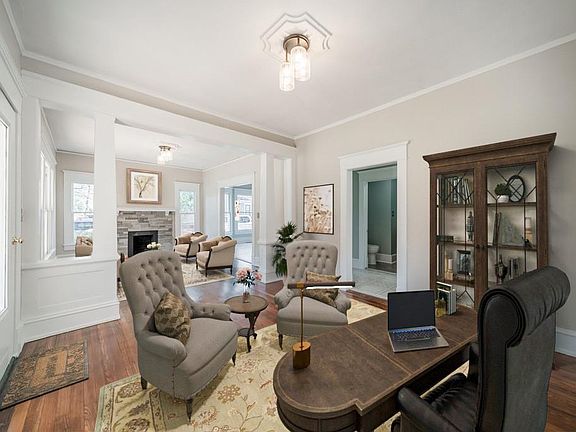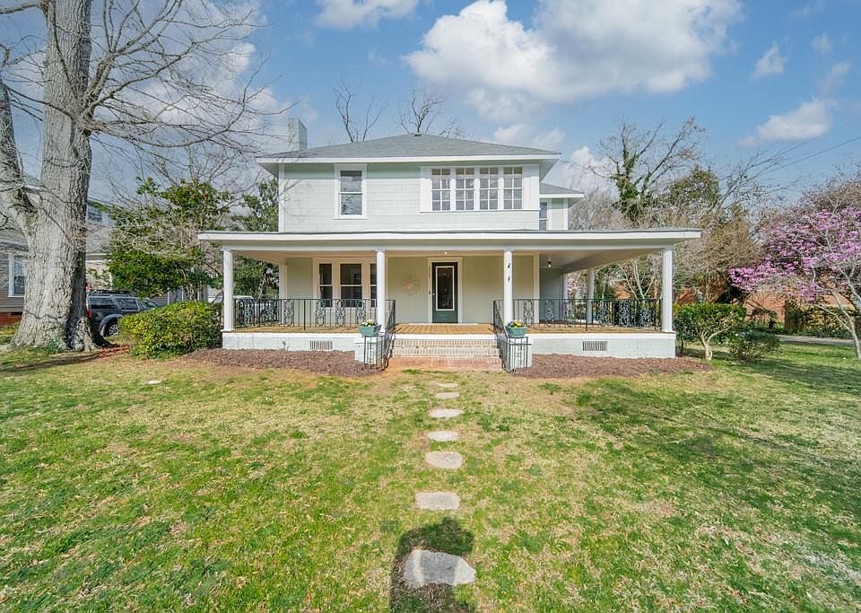 Beautifully renovated historical home just seconds from the charming downtown of Rock Hill, SC. Huge lot with professional landscaping and fenced-in yard. Safe & quiet street with friendly neighbors. Home has the original charm with all of the modern upgrades to create luxury living. Beautifully covered wrap around front porch perfect for enjoying cool evenings, welcomes you in with original hardwood floors & window panes throughout. Bright and open living room w/ grey stone fireplace opens to modern gourmet kitchen. New SS appliances, breakfast bar & nook for additional seating. Granite counters & tasteful tile backsplash plus detailed flooring create a gorgeous custom space for gathering and entertaining. Mudroom w/ laundry hookups lead to back porch and patio area to enjoy the peaceful backyard. Spa-like primary bedroom on main level w/ updated bathroom - walk-in shower & original clawfoot tub. Additional bedrooms plus bright sunroom perfect for home office or play area upstairs.