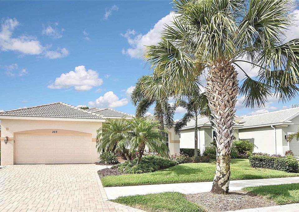 Welcome to the alluring neighborhood of Sawgrass, where this delightful maintenance-free home fuses elegance and comfort with the best in Florida living. Built by J&J Homes, an open floor plan flows with ease and connects to the privately landscaped pool area. Relax in the inviting living room with tile floors and custom built-ins for your flat screen TV and collectibles. Entertain with grace and finesse in the spacious dining room, where it's ample size can accommodate your china cabinet or buffet. Let socializing can go hand-in-hand with cooking as you prepare your favorite meals in the well-designed kitchen, equipped with maple cabinets, granite counters, stainless appliances and a center island. The living space will feel endless with the pocket sliders that open out to the pool area. The master suite layout has a huge walk-in closet and a beautifully appointed bath with dual sinks, walk-in shower and garden tub. And for your guests, they'll have plenty of room to spread out in the oversized second bedroom. The third bedroom, currently being used as an office, provides room to check off your to-do lists or the flexibility to adapt the space for your needs. Enjoy an afternoon swim in the sparkling pool within your privately landscaped backyard. This beautiful home is in the gated community of Sawgrass where residents savor a clubhouse with community pool, fitness, pickle ball and host of activities. Convenient to shopping, dining and downtown Venice.