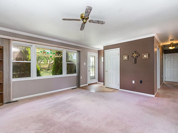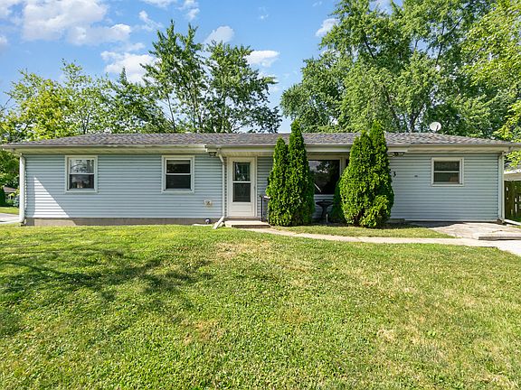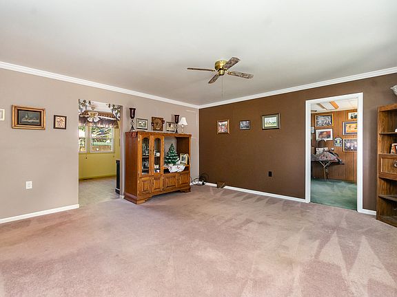 Just Over 1500 SF 3 bedroom 1.5 bath ranch with large 2.5 car garage on fenced corner lot! Beautiful crown molding in the spacious living room, galley kitchen opens to large eating area with door to 12x10 storage room, cozy rec-room, 3 bedrooms with mirrored closets & ceiling fans, full guest bath and 1/2 bath with laundry area accessible from main bedroom & kitchen area, central air, vinyl windows, white doors & trim, 2 paver patio areas, pool, shed, large garage with added cabinets for extra storage & so much more. Close to State Road 149 and schools.