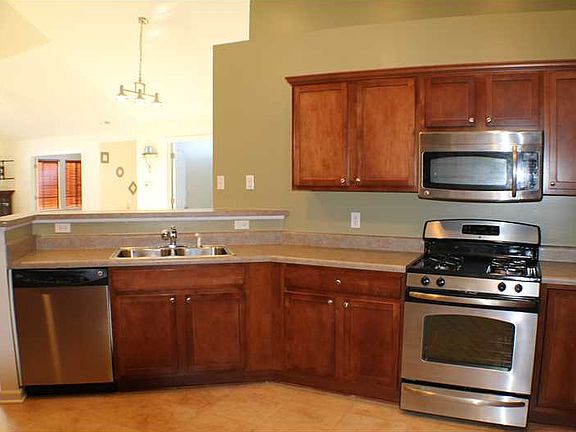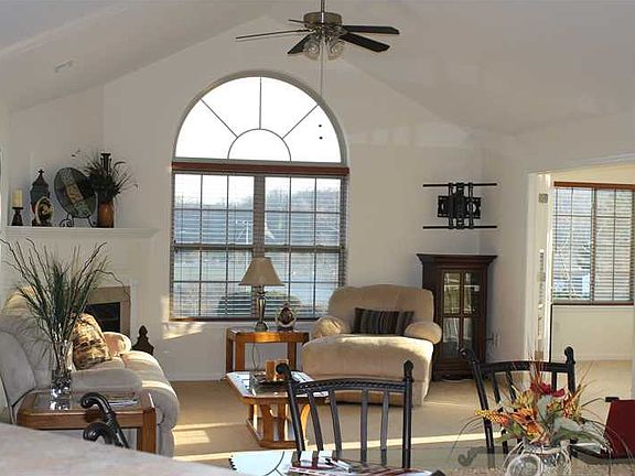 Move Right in to this beautiful open floor plan patio home -- true one-level living! Gorgeous upgraded cherry shaker style kitchen cabinetry and kitchen countertops w/ stainless steel appliances. Gas fireplace in living room makes for warm winter nights! Bright and cheery with accent windows, and cathedral ceilings throughout make the rooms feel huge. Den could be poss 3rd BR. Condo fee includes water/sewage, exterior maintenance/landscaping, use of pool/clubhouse