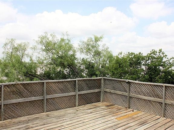 LEASED LAND. Lakefront property with a spectacular view from the back deck! 1 bedroom, 1 bath recently remolded full bath and large closet, nice kitchen layout opens to the living room. New air conditioning unit in living room. 2-year old metal roof and good siding. Picturesque front view of home with lake in the background. Treed backyard all the way to the water with a metal staircase that leads down to the water, ample room for dock. Excellent for fishing, perfect for entertaining or the perfect hideaway. Take a look for yourself! Lots of room for parking, over-sized lot. City of Abilene recently conducted a survey and lot size is at least .500 but will have exact size at a later date. Storage unit stays.
