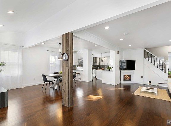 A MUST SEE ! This home was just renovated from top to bottom in 2017 and still looks brand NEW!The home features HARDWOOD floors throughout, combined with a modern open floor plan this home just gets better and better. A spacious living and dining room area that is completely open to a modern eat in kitchen, with designer finishes.2 FIREPLACES. A BONUS room with Double French Patio doors leading out to a HUGE deck and LARGE manicured backyard, with a beautiful new fence for privacy ideal for entertaining. This home host 4 BEDROOMS and 3 FULL bathrooms, Master Suite consist of a double Vanity sink , Custom Shower and a WALK UP HIS &HER CLOSET Finished basement with a laundry hookup. Ample Parking.This beautiful suburban community is within walking distance from houses of worship, parks, restaurants and shopping. Bus stop to NYC just 1 block away!!!!!