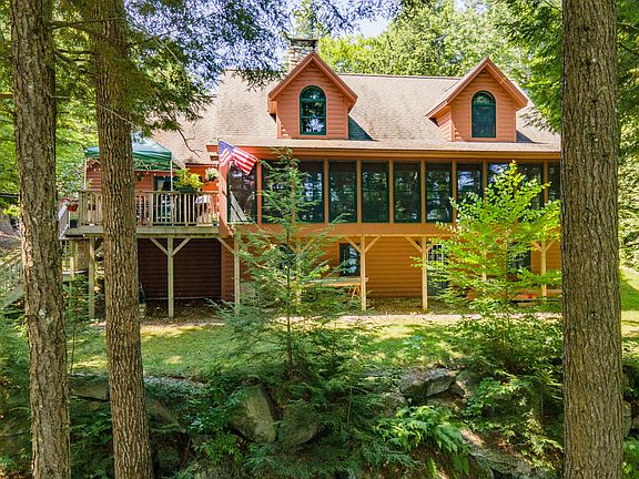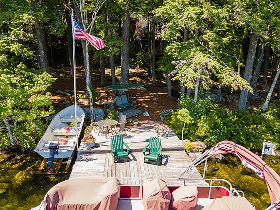 GREAT POND - Beautifully Custom Built log home on 3.87 acres, with 196 feet of waterfront. Cathedral living room with exposed 3-flue stone fireplace; an antique kitchen cook stove adds charm to the eat-in kitchen plus there is a formal dining area for entertaining. French doors lead to the wonderful year round porch. Primary first floor en-suite featuring large walk-in closet, and access to the year round porch overlooking the lake. An attached 2 car oversized garage with one step into house, leads to a mud room with laundry. Hardwood floors throughout, Slate countertops, island and sink, dry walk-out basement, for even more additional rooms. Completely engineered site with an engineered foundation for drainage. All copper plumbing, The 40 X 46 barn and workshop was built in 2018 and is insulated and heated with a full bath on main floor. 2nd floor is open and unheated for even more possibilities. Entire property is exceptionally maintained with a great location on the lake. Year round access with paved driveway. The 2.25 acres across the street was added for privacy and extra parking. Conveniently located to Belgrade Lakes Village and an easy drive to Augusta, Waterville or Farmington. Great Pond is a 8,500 lake enjoyed for boating, swimming, fishing, exploring - take your boat to the Village for dining, shopping, and entertainment. A marina is available for gas too! Endless hiking trails. ''Where memories last a life time.''