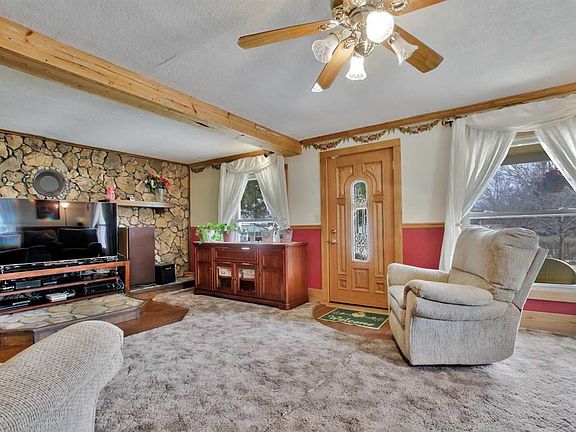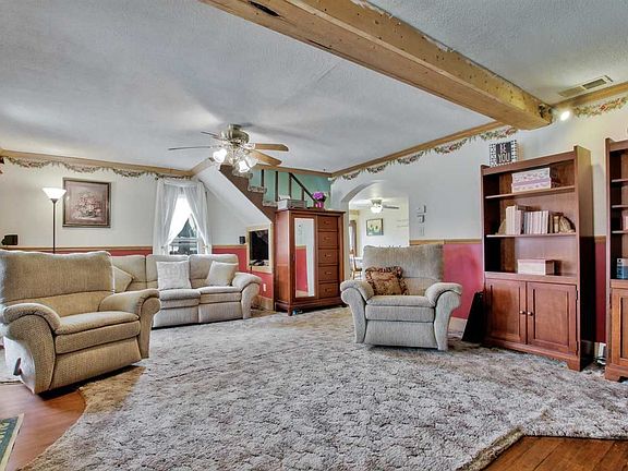 Welcome home! This well maintained charmer tucked on a 0.40 acre lot across from the new Mulvane Library has been carefully updated by one owner over the last twenty years. Enjoy low maintenance vinyl siding, spacious rooms, hardwoods, zoned heating/air conditioning, mud room, an expansive concrete patio with a fireplace, storm shelter, cellar, storage shed, fenced dog run and a 30' x 40' detached metal garage with concrete flooring, a work bench and a hose for an air compressor. Retreat to a spacious second story master suite which was completely remodeled with vaulted ceilings, dormer windows, a walk-in closet, walk-in shower and a make-up counter. The entire home was rewired and replumbed, sewer line was replaced in 2002, HVAC was replaced in 2008, roof was replaced in 2003 (back side) and 2009 (front side), concrete driveway was poured in 2010 and gutters were replaced in 2010. Pride of ownership shows throughout; don't miss!