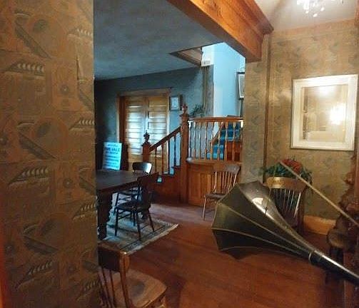 This beautiful Colonial home located in Stockton. This home had been the Hammond house Bed and Breakfast for many years, along with a tea room and gift shop. There are 15 rooms total which consist of 7 bedrooms, 6.5 bathrooms. When entering this home from the front door, you enter into a beautiful foyer with an open staircase that takes you to the next floor that has a skylight cupola. Basement if finished with Knotty pine walls with a game room and a full kitchen for entertaining. Main floor has two parlors, back entry, 2 stairways, a prep kitchen, 3 bedrooms with full baths. The 2nd floor is the main living, a large sized kitchen, family room, formal dining room, storage rooms and 2 bedrooms with bathrooms. The 3rd floor has 2 additional bedrooms with full bathrooms. The house has deck in back to enter at every level. 3 car garage in back of house, enter from the alley. Well built house, just looking for a new owner. It is beautiful!